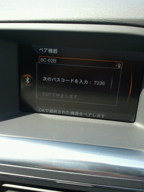 ボルボの画面にPIN入力の指示が出ますので、GalaxySに数字を入力して完了です。